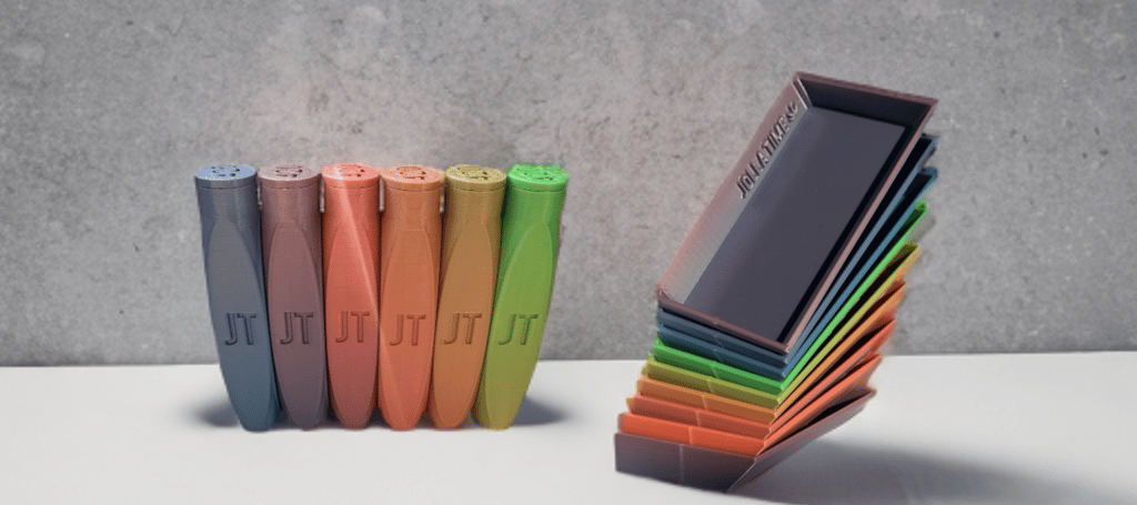Noi di Jolla Time uniamo creatività, sostenibilità e good vibes; portando avanti la cultura del chilling. Progettiamo e stampiamo in 3D accessori unici per fumatori: grinder, piattini, barattoli e porta canne; realizzati in PLA, un materiale biodegradabile e rispettoso dell’ambiente.
